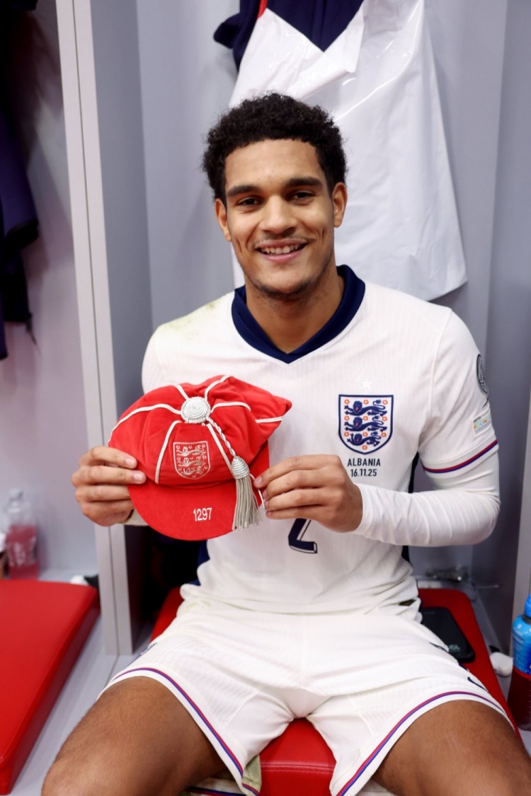演出首秀!宽萨是英格兰队史第1297位出场球员,赛后获赠挂念帽子