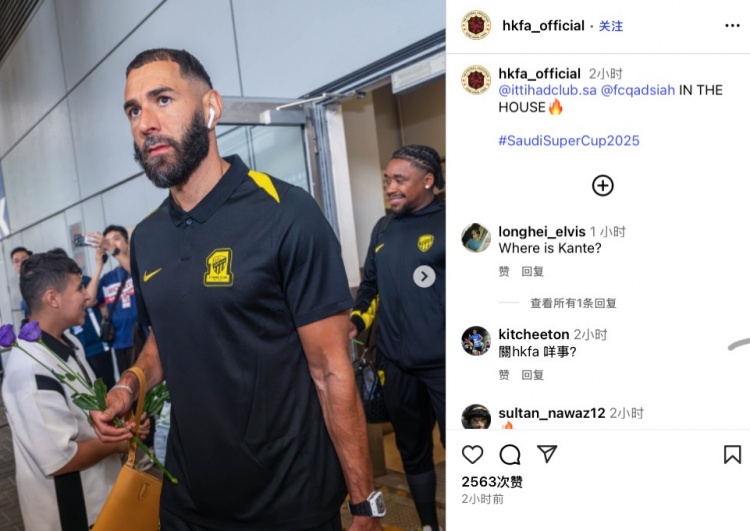 中国香港足协ins为相片配文写谈:“吉达连合和库迪西亚已就位!#沙特超等杯2025”
