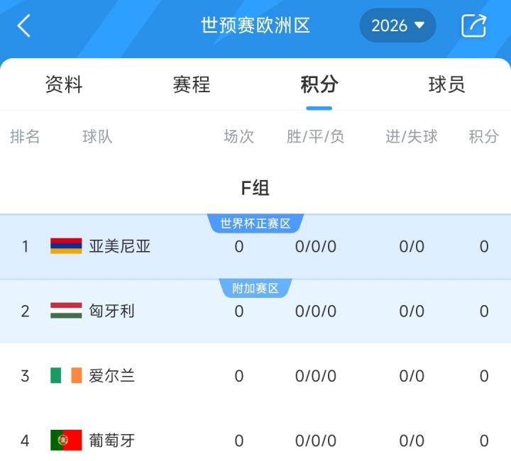 9月份的世初赛比赛中,葡萄牙将先后在客场对阵亚好意思尼亚和匈牙利;本届世初赛中,葡萄牙与亚好意思尼亚、匈牙利、爱尔兰一同分在F组。