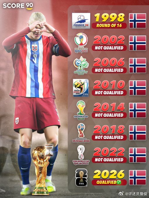 关联词,2006年世界杯后,跟着其他地区足球功绩的迅猛发展,以及北欧足球的式微,他们照实逾期了。老一代球员冉冉离开足坛舞台后,青黄不接成了主要问题。挪威也不例外,这导致他们的收货大幅下滑,整整27年无缘世界杯便是明证。
