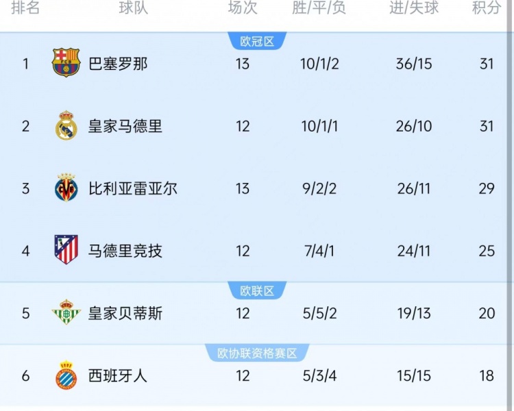 比利亚雷亚尔西甲前13轮积29分,创造队史西甲同时最好开局