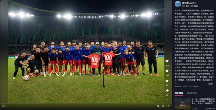 11月23日讯 中超联赛临了一轮遗弃后,梅州客家宣告保级失败,降入下赛季的中甲联赛。赛后梅州客家队长廖均健更新应对账号,谈到这一年的感思,并向球队的支握者致歉。