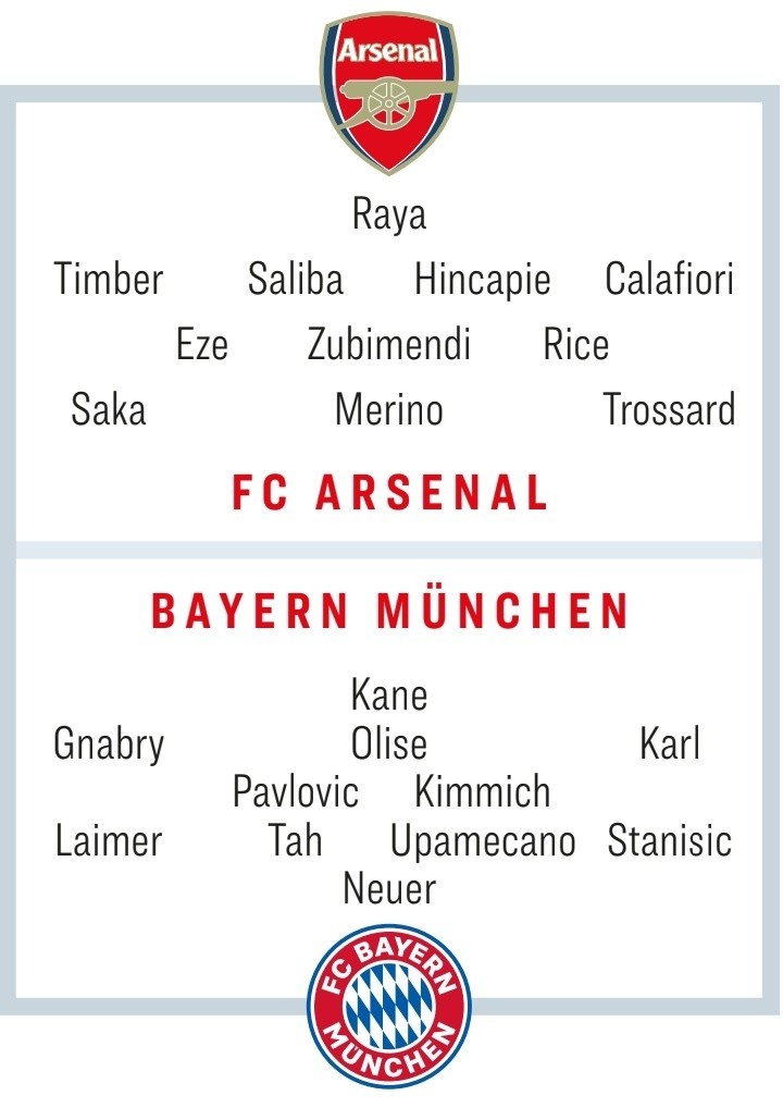 11月24日讯 拜关怀阿森纳在本轮联赛各自得到大捷,两队也将在周中迎来欧冠榜首之争,拜仁作念客挑战阿森纳。《踢球者》也展望了两边首发: