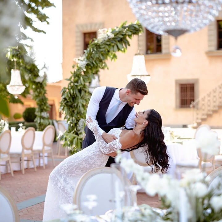加比亚与费德里卡相恋多年,两东说念主2024年6月订婚,一年后的6月举行了婚典。笔据社媒先容,费德里卡曾是别称拍浮敞开员。