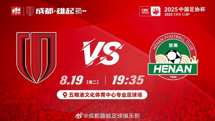 比赛日 足协杯半决赛 成王人蓉城 vs 河南 8月19日(周二)19:35