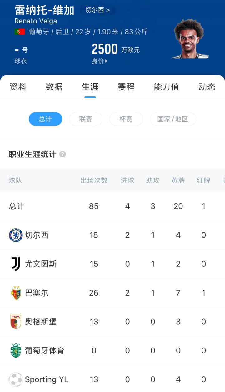 维加2024年7月以1400万欧加盟切尔西,签约至2031年6月。本年冬窗,维加租出至尤文,上赛季各项赛事他共出战33场比赛,孝敬2球2助攻,德回身价2500万欧。