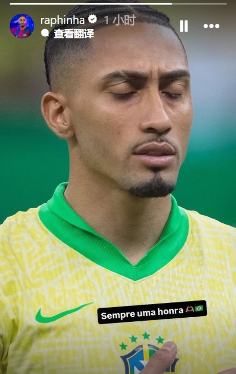 拉菲尼亚晒出了身穿巴西队的像片,配文写说念:“持久齐是一种荣誉。”