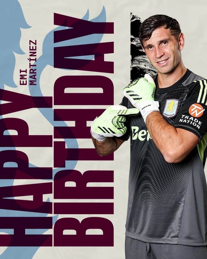 9月2日讯 今天是阿根廷国门马丁内斯的33岁诞辰,阿斯顿维拉官推发文为他奉上祝颂。