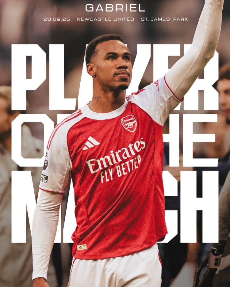 此役加布里埃尔补时阶段头球绝杀,匡助阿森纳取胜,阿森纳官方秘书,他当选本场比赛队内最好球员。