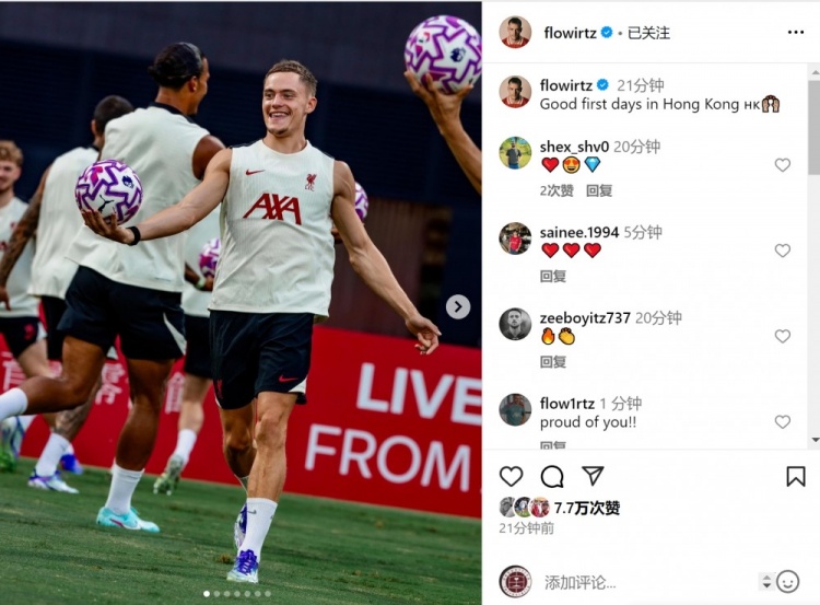 7月24日讯 利物浦新援维尔茨更新社媒动态,晒出在中国香港磨练的像片。