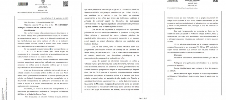 此项判决是在详尽分析父母证词、涉事未成年东谈主就读的比森特-洛佩斯学校提交的文献贵府,以及布宜诺斯艾利斯市儿童权利委员会出具的评估领略后作出的。根据征集的信息,该未成年东谈主在其西席机构曾述说了几许与被告共同生涯的情况。听取孩子述说的教师也在观察官眼前作证,阐述了学校领略中的记载,并补充证明了针对该未成年东谈主开展的多学科干扰细节。