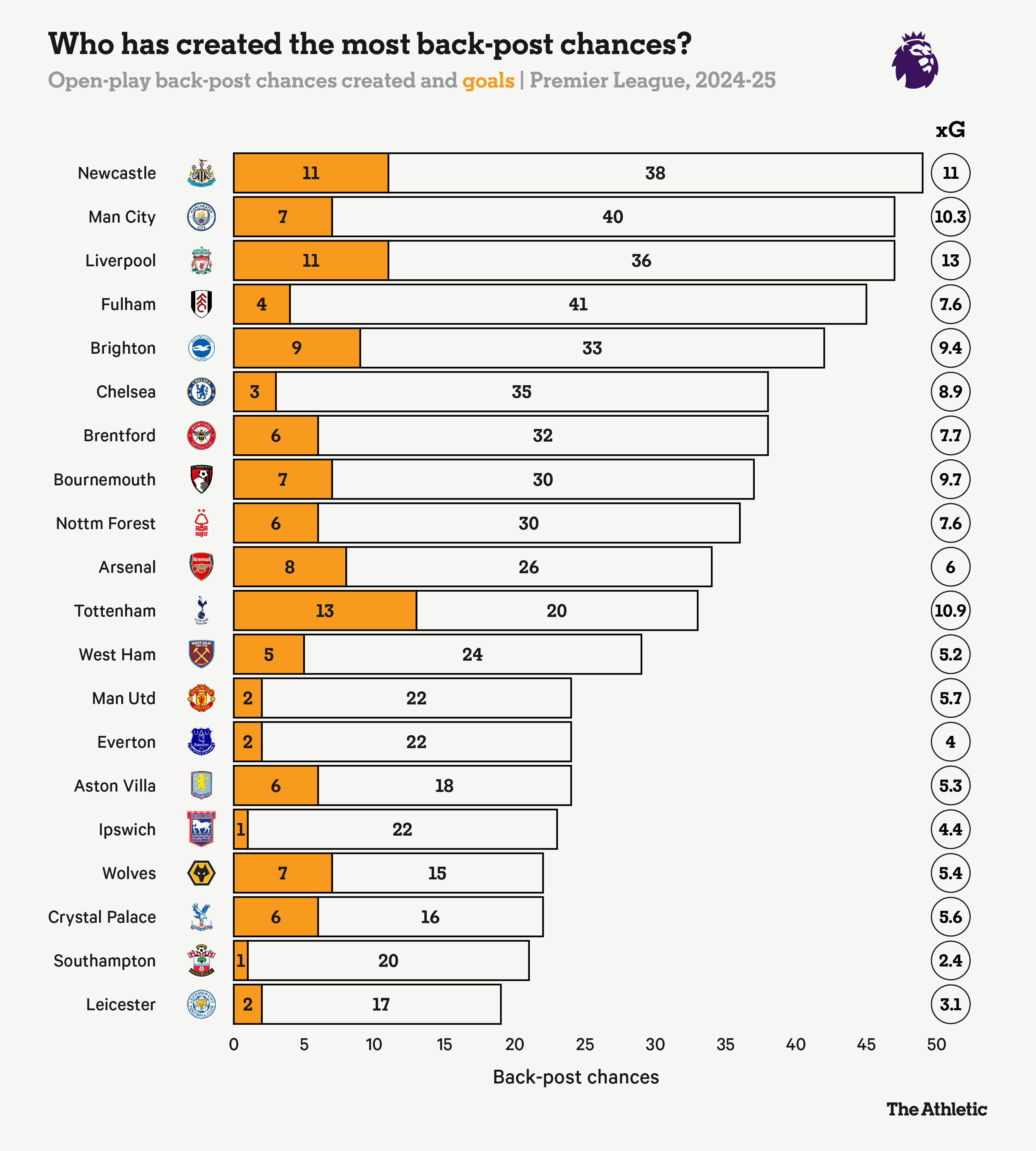 下图展示了纽卡斯尔联在2024-25赛季怎样插足禁区。