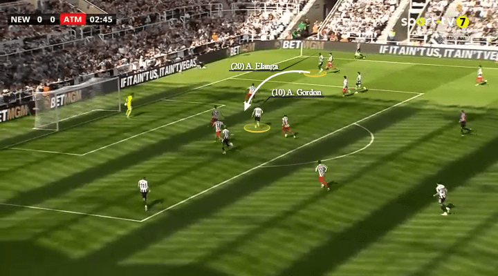 如下图所示,纽卡斯尔联很少横向或回撤组织——相悖,他们的遑急方式具有纵向性。