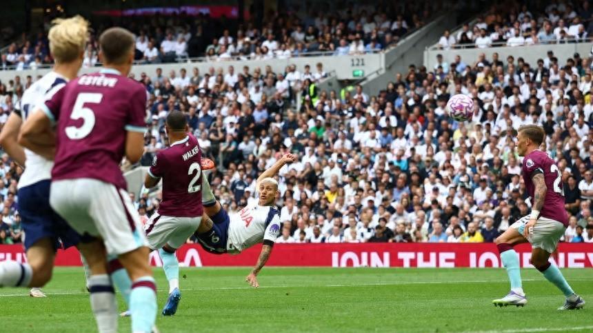 北京时间8月16日晚,2025/26赛季英超联赛首轮全面打响。托特纳姆热刺在主场以3比0完胜升班马伯恩利,得到新赛季开门红。比赛中,巴西先锋理查利森攻入一粒精彩绝伦的倒钩破门,成为全场焦点。