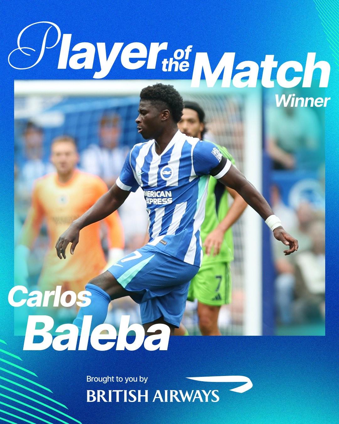 巴莱巴当选为布莱顿1-1富勒姆队内最好球员,禁绝3次全场最高