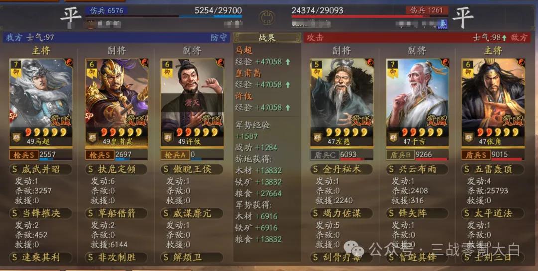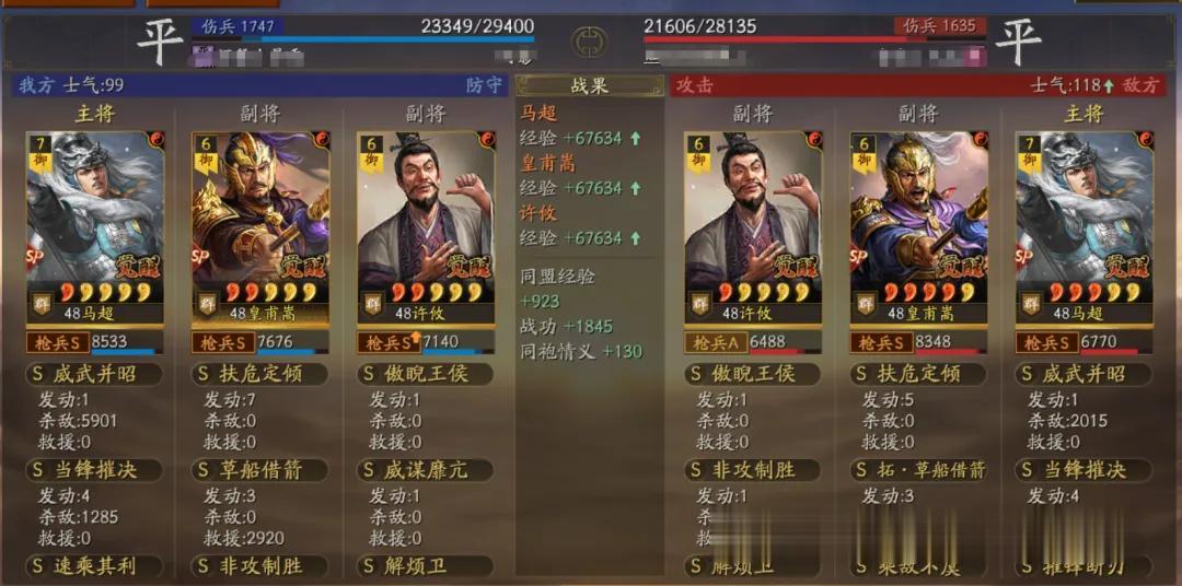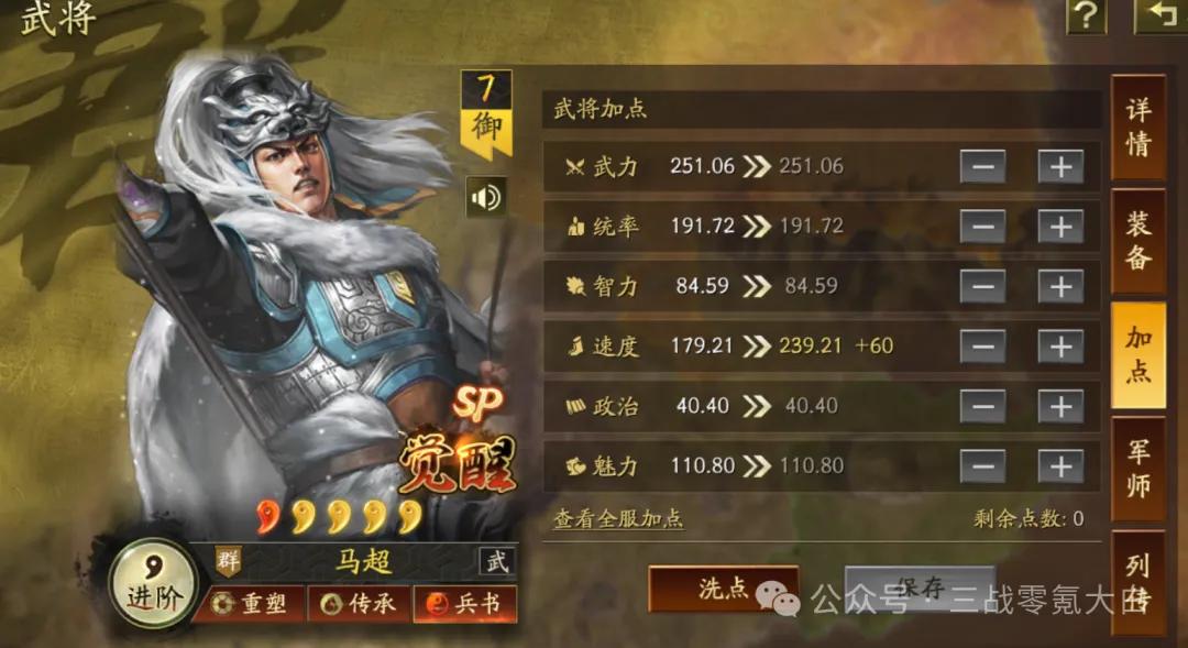 加点上:sp马超全速、sp皇甫嵩全统、许攸全智佩戴枪宝物。