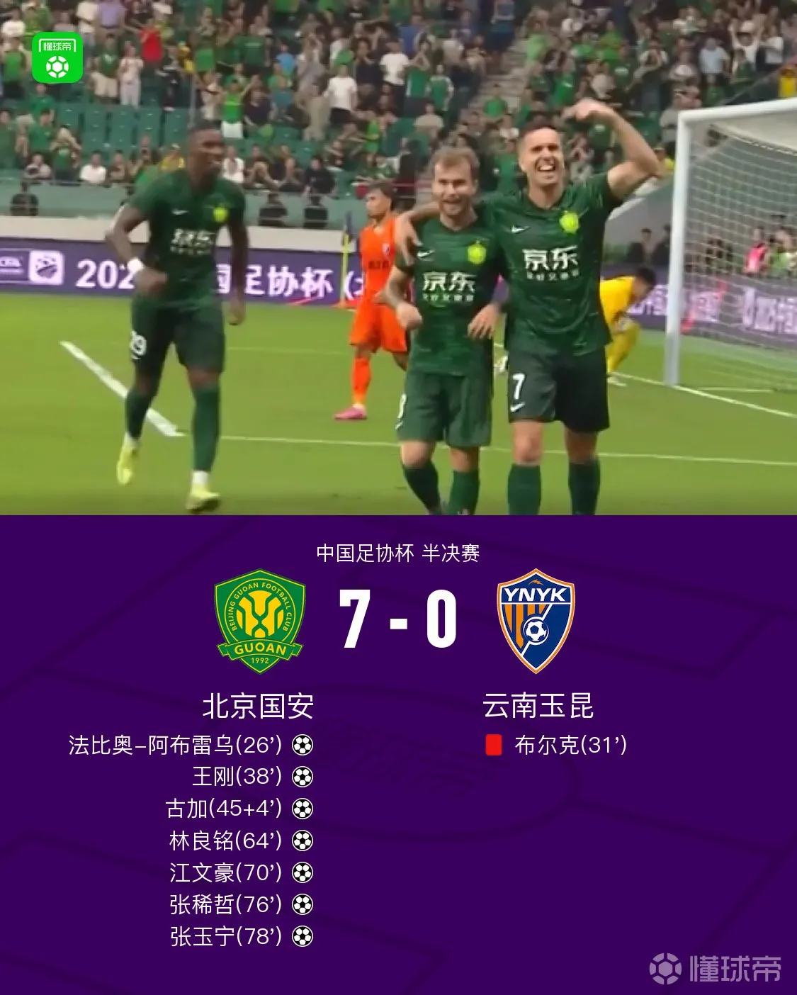 其实国安下半场如故收了,下半场外助齐换下去了,否则10:0齐有可能。