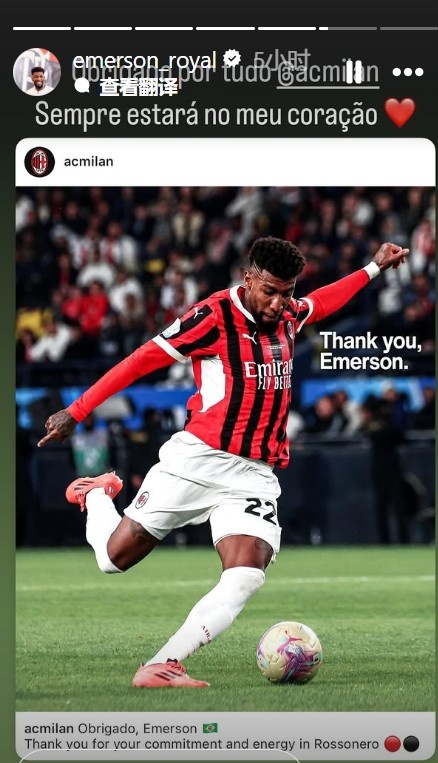 埃默森也在Instagram上回话说念:“谢谢米兰的所有东说念主,你们始终在我心中。”