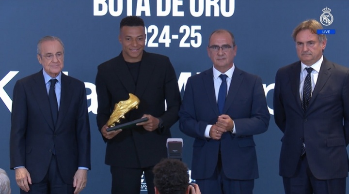 生活初次获奖!姆巴佩领取24-25赛季欧洲金靴,皇马全队到场支持