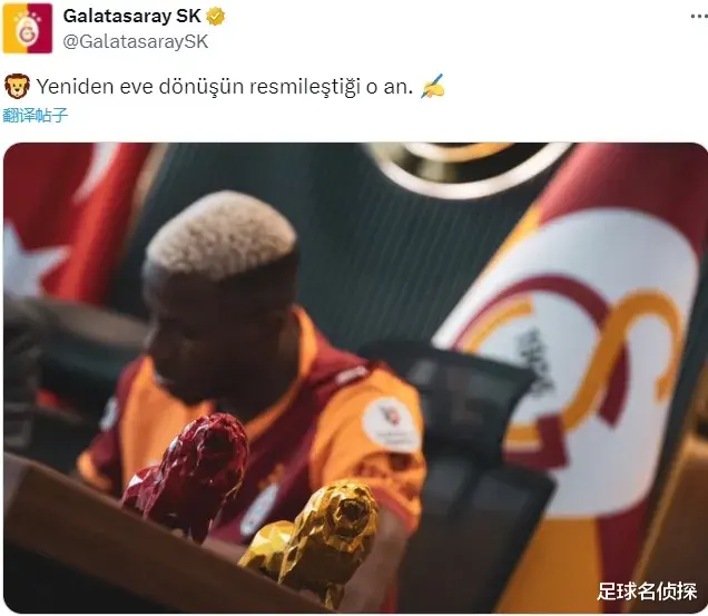 官方:加拉塔萨雷告示从那不勒斯签下了奥斯梅恩,两边签署了一份4年合同。
