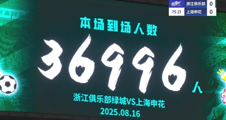 近四万东谈主不雅战浙江vs申花!浙江主场现场不雅世东谈主数36996东谈主
