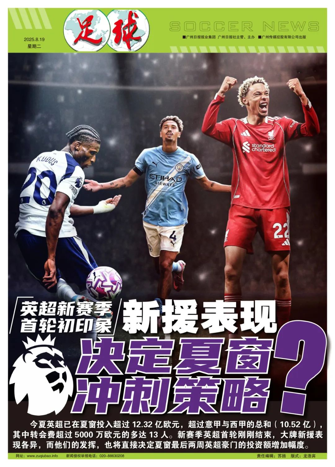 撰稿/寒冰 今夏英超已在夏窗干与杰出12.32亿欧元,杰出意甲与西甲的总额(10.52亿),其中转会费杰出5000万欧元的多达13东谈主。英超首轮后各队新援发扬各异,必将让还剩两周的转会窗愈加吵杂,平直影响夏窗冲刺期的投资力度。