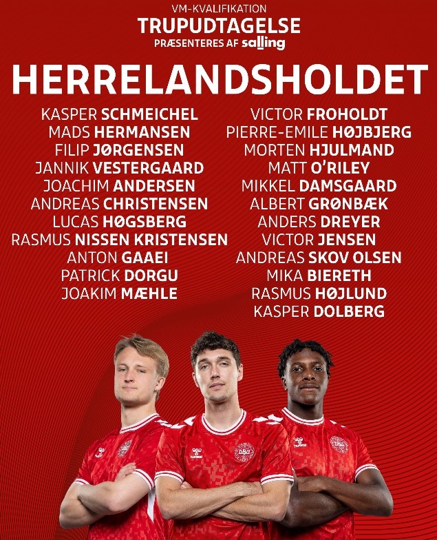 丹麦国度队大名单:小舒梅切尔领衔,霍伊伦、多古、尤尔曼德入选