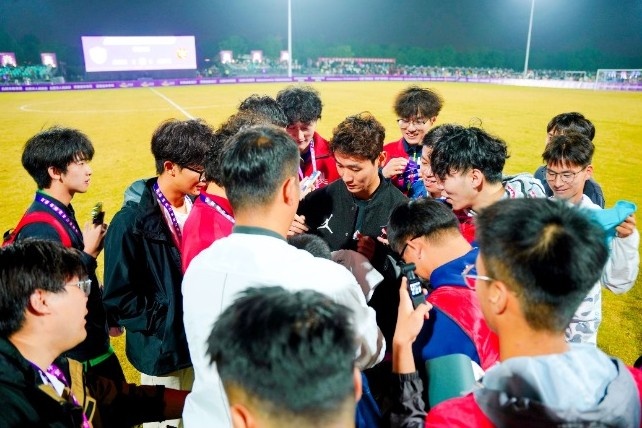 比赛当晚,合肥骆岗公园东说念主声烦嚣、热气腾腾。在比赛中场休息工夫,安徽蚌埠籍足球理解员、现役国脚韦世豪亲临现场为赛事助阵,并与合肥、蚌埠、安徽青训三支队伍的队长交换球衣。