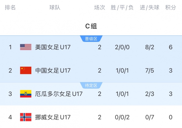 赛前小组积分榜,中国女足U17以3分暂列小组第二,今晚她们若赢球或打平均可锁定小组前二出线。